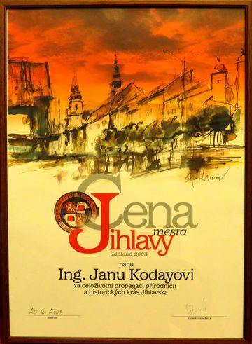 Zastupitelé města Jihlavy ocenili, že Ing. Jan Koday umožňoval mnoha lidem, nejen organizovaným turistům, smysluplné trávení volného času a udělili mu v roce 2003 Cenu města Jihlavy za celoživotní propagaci přírodních a historických krás Jihlavska.
