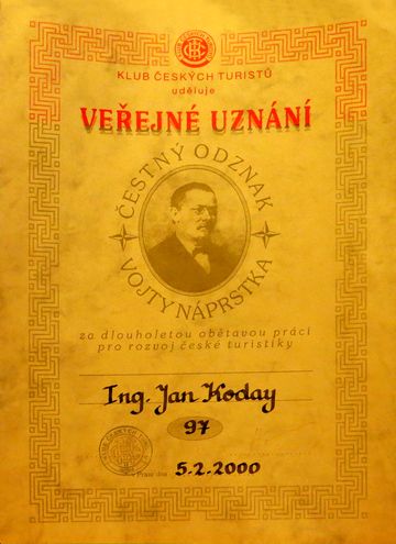 V roce 2010, při příležitosti 90. narozenin Ing. Kodaye a zároveň oslav 90. výročí založení KČT Čeřínek, obdržel Čestné uznání KČT za dlouholetou úspěšnou a obětavou práci pro turistiku.