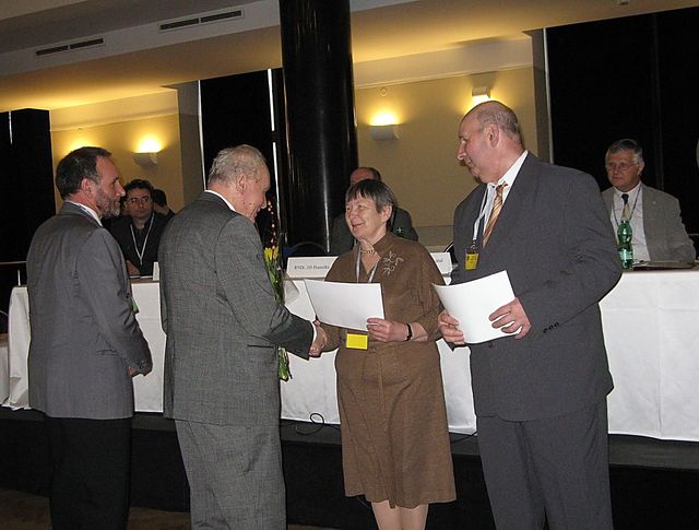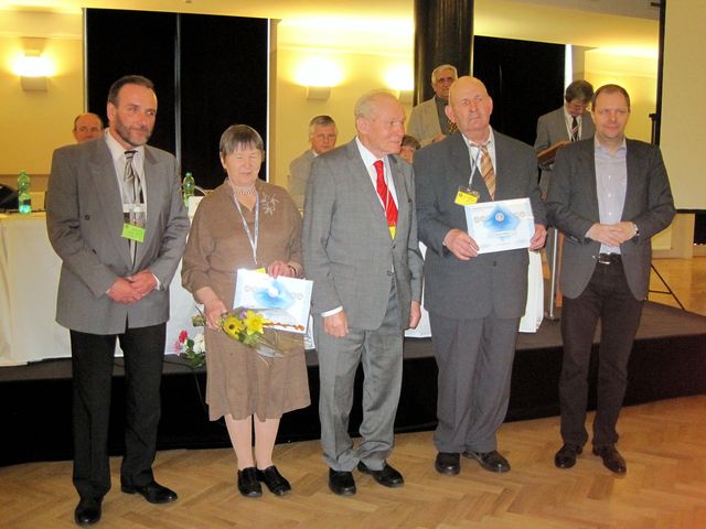 K nejvyšší poctě, kterou lze v turistice dosáhnout, blahopřáli dceři a synovi Ing. Jana Kodaye ministr školství, mládeže a tělovýchovy Marcel Chládek, předseda KČT Vratislav Chvátal a emeritní předseda KČT Jan Havelka.