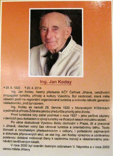Ing. Jan Koday, celoživotní propagátor turistiky, přírody a kultury Vysočiny, osobnost, která měla zásadní podíl na utváření kultivovaných poměrů v regionální organizované turistice a ovlivnila několik generací turistů, se stal vzorem mnohým lidem. Jako dlouholetý předseda KČT Čeřínek Jihlava vštípil svým kolegům turistům ideály, které jsou dosud v práci jeho pokračovatelů v odborech jasně patrné.