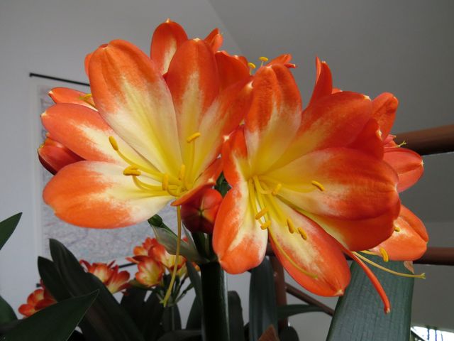 Před padesáti lety jsem dostala klívii, stěhovala se s námi – pak jí byl květináč malý, tak vždycky po čase jsme výhonek oddělili – po letech je jich pěkné zelené stádečko.