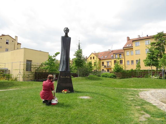 Vedení vycházky se ujal historik umění PhDr. Ivan Žlůva, který pohovořil o úloze Parku Gustava Mahlera v životě obyvatel města a po odborné stránce přiblížil výsledek práce autora sochy profesora Jana Koblasy – závěrem vyslovil přesvědčení, že časem i ti, kteří mají výhrady k sochařskému dílu, uznají jeho nadčasový rozměr a krásu.