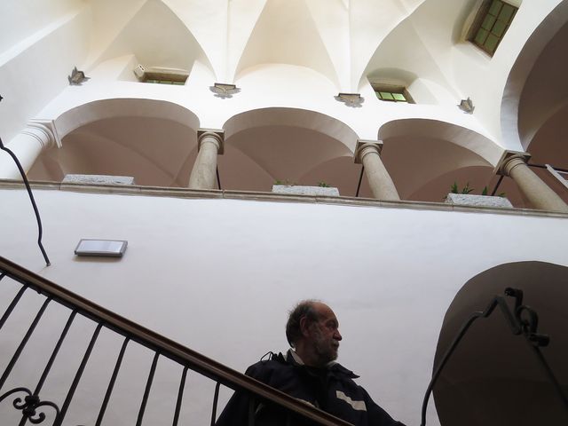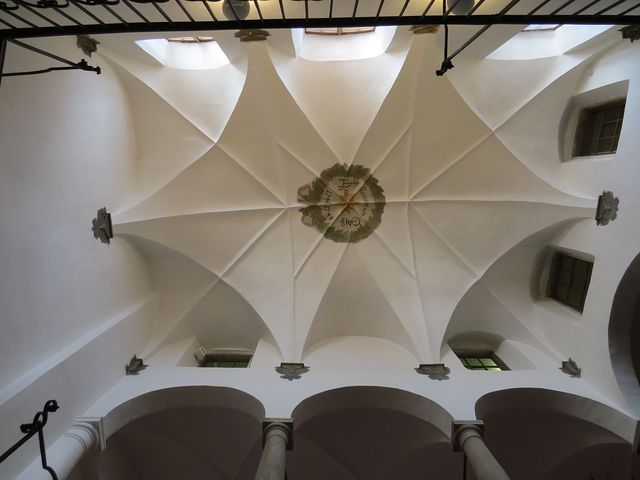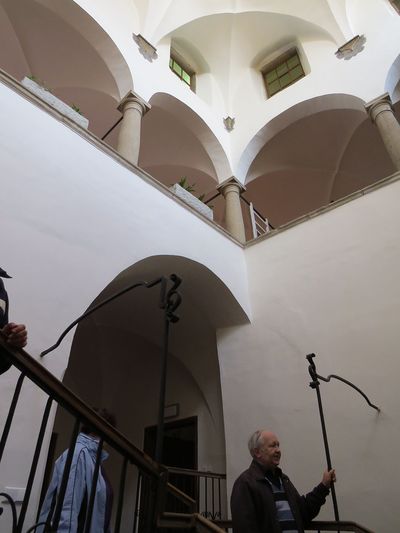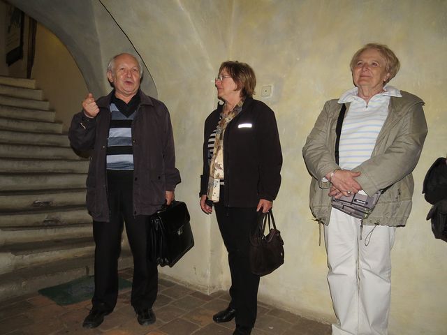 Nejdříve jsme vstoupili do budovy muzea Vysočiny a v nádherné dvoupatrové dvoraně s arkádovým ochozem na sloupech jsme si podle odborného výkladu PhDr. Žlůvy prohlédli její jádro – ačkoliv zde většina účastníků vycházky nebyla poprvé, podívali jsme se dnes na renesanční halu s horním osvětlením jinýma očima.