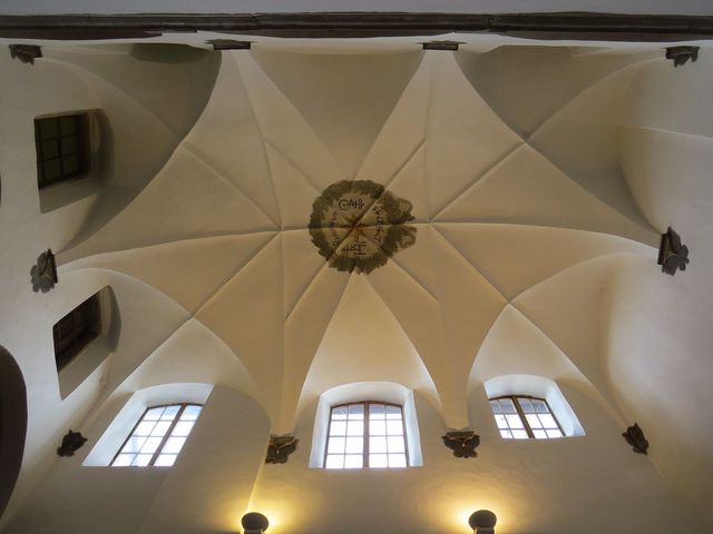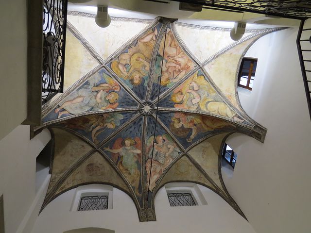 Malířská výzdoba z konce 16. století na osmidílné klenbě patří ke klenotům jihlavské renesance – šest bosých andělů (což byl symbol skromnosti stavebníka) drží různé hudební nástroje (to je odkaz na pěvecké spolky s vysokou úrovní, které v 16. století v Jihlavě působily – viz článek Chvála hudbě), další má otevřenou bibli se žalmem a poslední anděl je připomínkou mravného života podle zásad protestantské víry, která v té době v Jihlavě převládala.