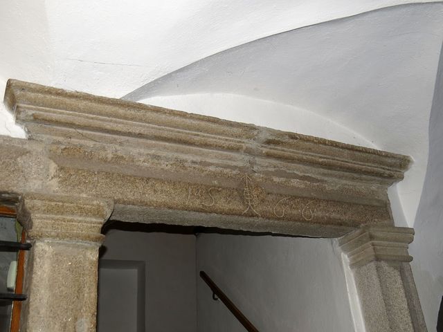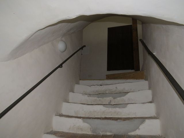V této dolní síni, mázhausu, která byla i jediným vstupem do zadního traktu, na dvůr, nás Dr. Žlůva upozornil na vstupní portál s vytesaným letopočtem 1566. V přízemní místnosti býval pravděpodobně šenk, pivo zrálo v rozsáhlých dvoulodních sklepích pod tímto domem, jehož předchůdce tu určitě stával už ve 14. století.