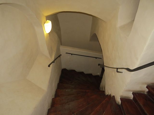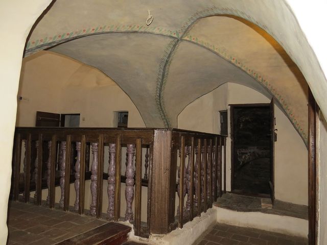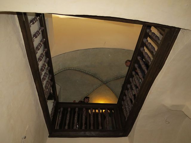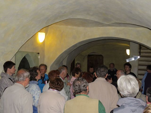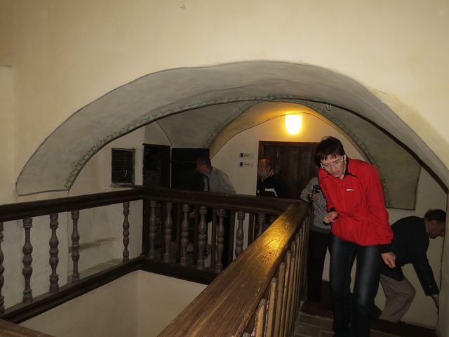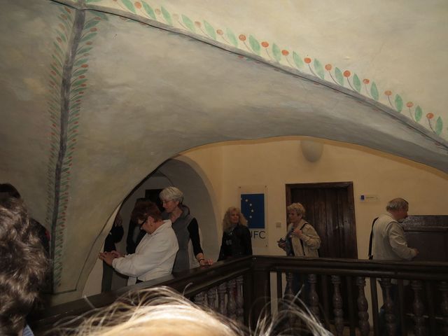 Poměrně úzký, třípatrový dům, pravděpodobně z konce 15. či začátku 16. století, musel být stavěn do hloubky a bylo nutné vyřešit osvětlení vnitřního traktu – všichni jsme byli výsledkem okouzleni – jako bychom se přenesli o několik století zpět. Dům je velice cenný, protože v něm nebylo příliš stavebních zásahů – obdivovali jsme dřevěné renesanční zábradlí, černé kuchyně s topeništi a v místnostech ve druhém poschodí zachované dřevěné trámové stropy ze 16. století.