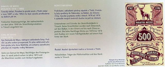 Ze všech řemesel, která dosáhla ve Třešti věhlasu (na prvním místě jmenujme výrobu betlémů), zmíníme zde sirkařství – povolení k výhradní výrobě sirek získal v roce 1847 turecký občan Samuel de Mayo, jehož syn Karel v podnikání úspěšně pokračoval. Po jeho smrti převzal sirkárnu Moritz Meissner; firma prosperovala a vyvážela zápalky do celého světa, na začátku 20. století ale podnik zanikl.