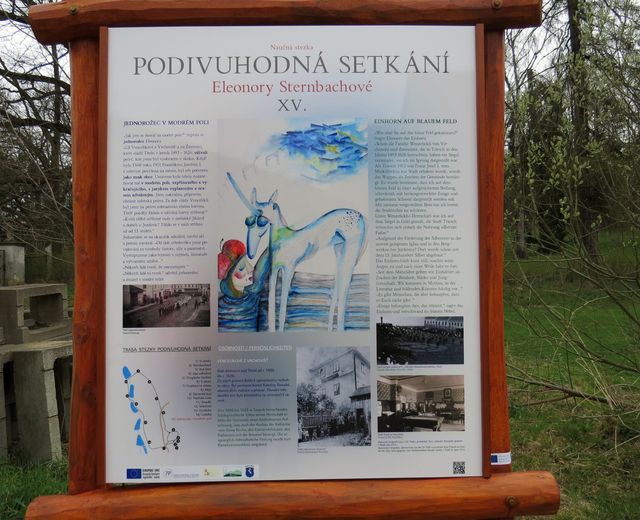Na posledním panelu se v půvabném článečku dozvídáme o bájném jednorožci, jehož měli ve znaku už Vencelíkové z Vrchovišť a od roku 1901, kdy byla Třešť povýšena na město, se stal i jejím znakem.