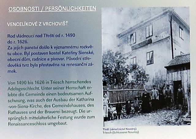 Trochu historie: Třešťské panství se zámkem zakoupili baroni Wenzel-Sternbachové z Tyrol v roce 1844, usadili se zde a postupně zvelebili město i okolí, v polovině 19. století vybudovali patnáctihektarový anglický park u zámku, začali s vysazováním dnes proslulých třešťských alejí, důraz kladli na rozvoj školství a zvyšování vzdělanosti, podle jejich skutků se dá říci, že celý rod považoval toto místo za svůj opravdový domov. V archivech jsou dochovány zápisy o štědrých peněžitých darech jednotlivých členů rodu Sternbachů do různých resortů – ale přišla okupace a válka – a to byl konec idyly…