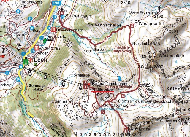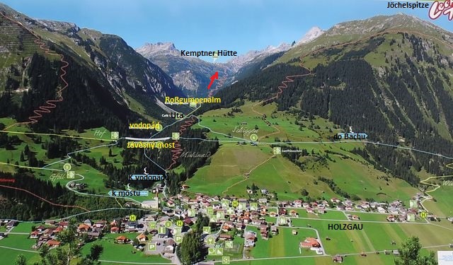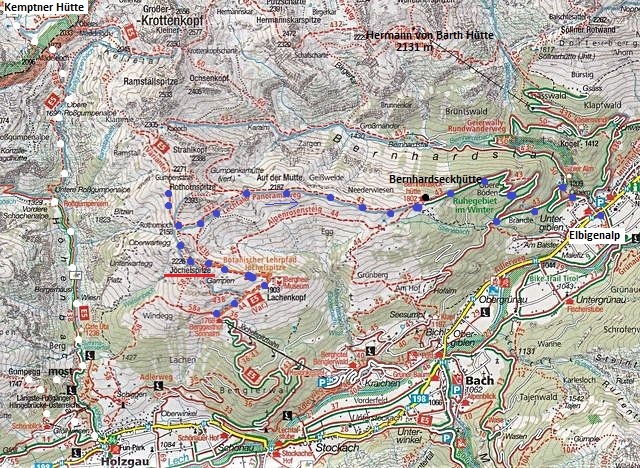 Myslím, že mapka se hodí – je na ní zaznamenána cesta od stanice lanovky na Jöchelspitze, do sedla Rothornjoch, přes Mutte k Bernhardseckhütte až do cíle v Elbigenalp: