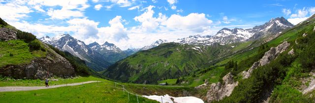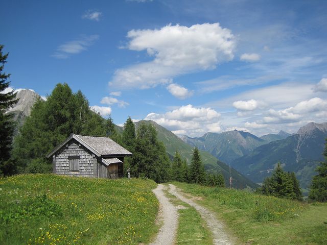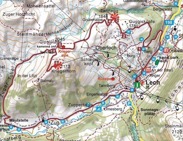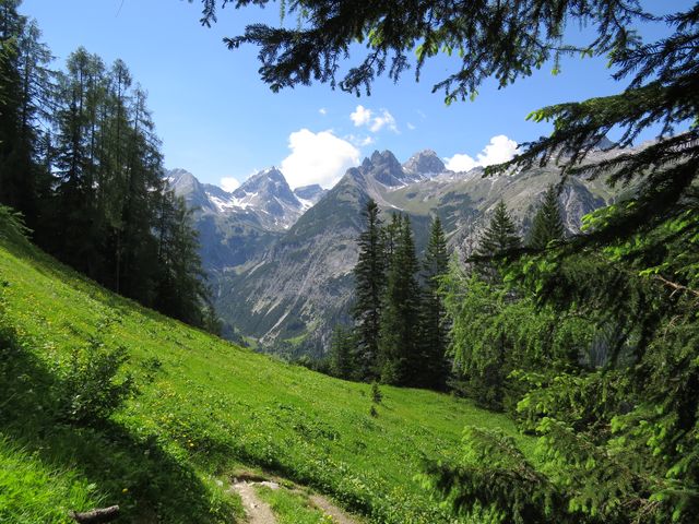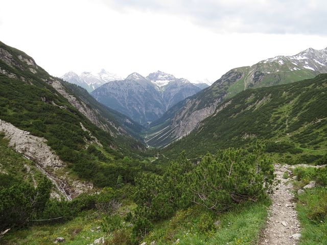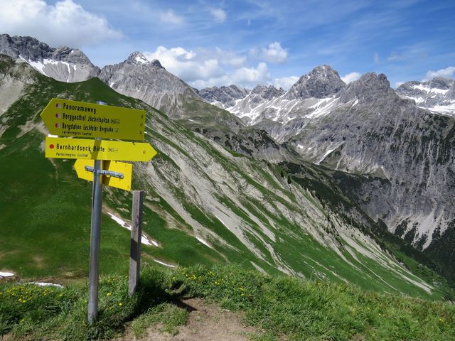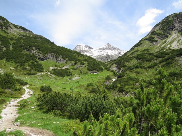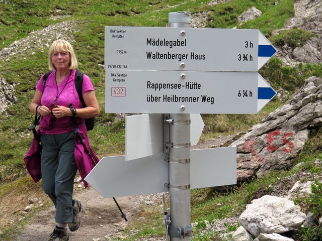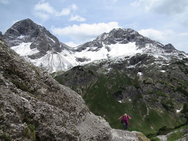 Trasa: Holzgau (1103 m) – Vordere Schochenalpe (1330 m) – Mädelejoch (1974 m)-státní hranice – Kemptnerhütte (1846 m) – tam a zpět 6,5 hodiny.