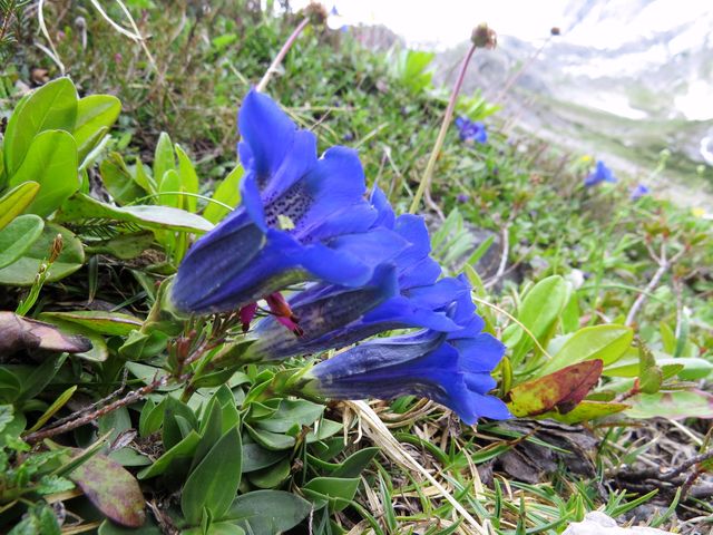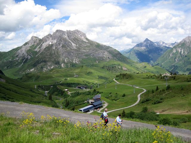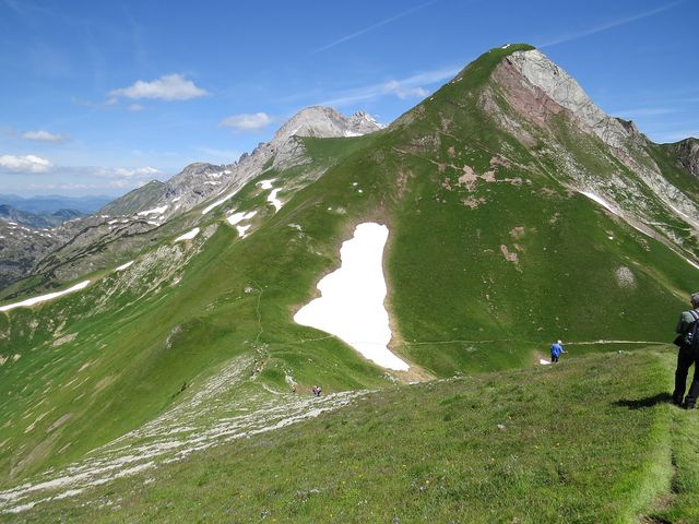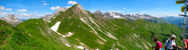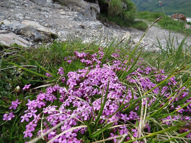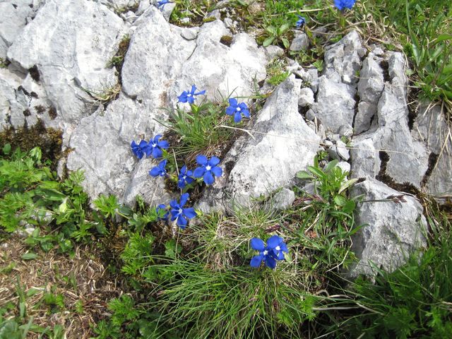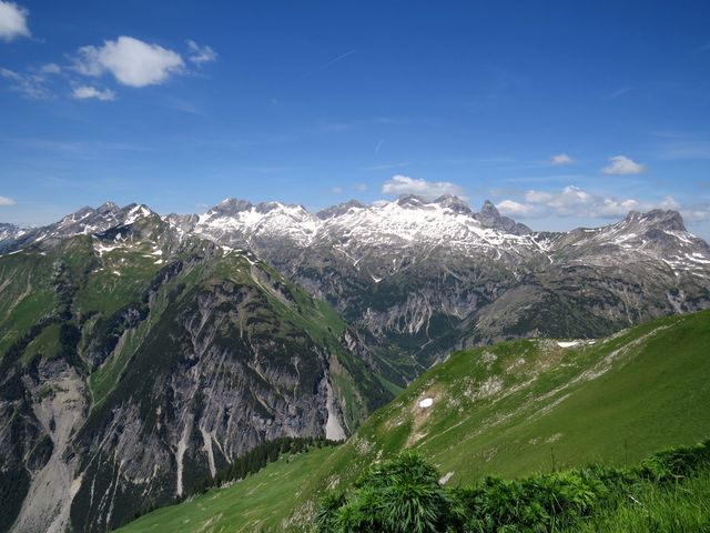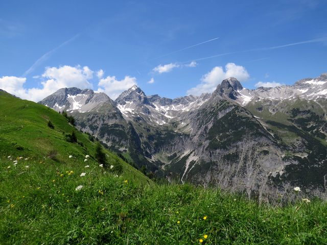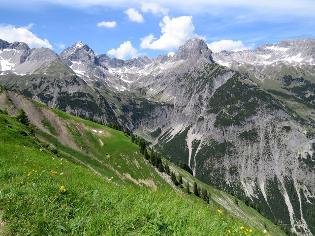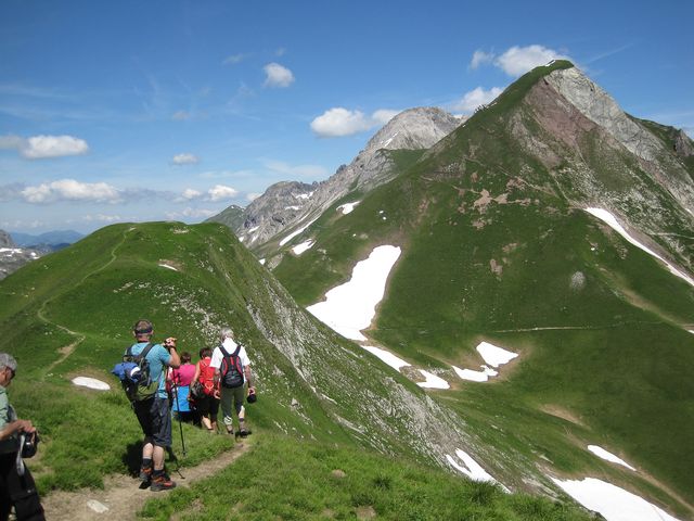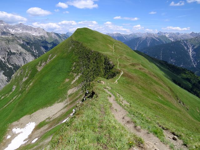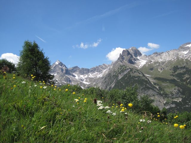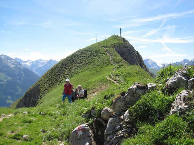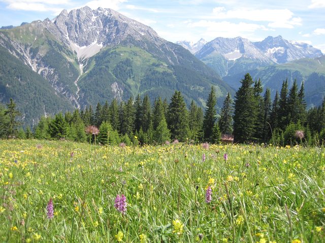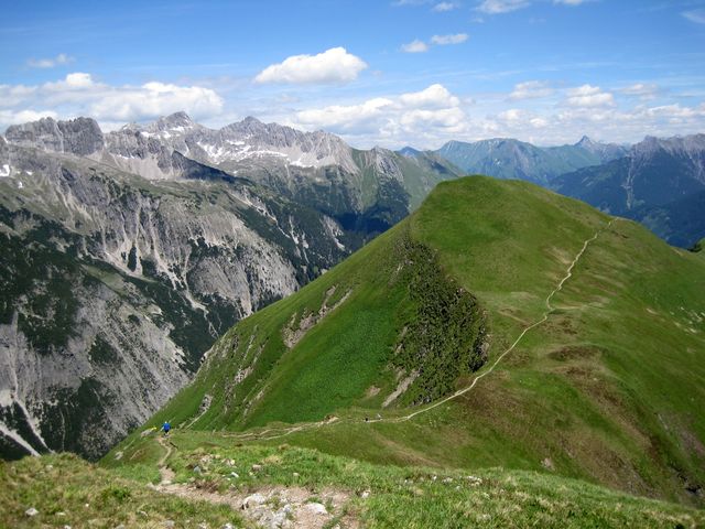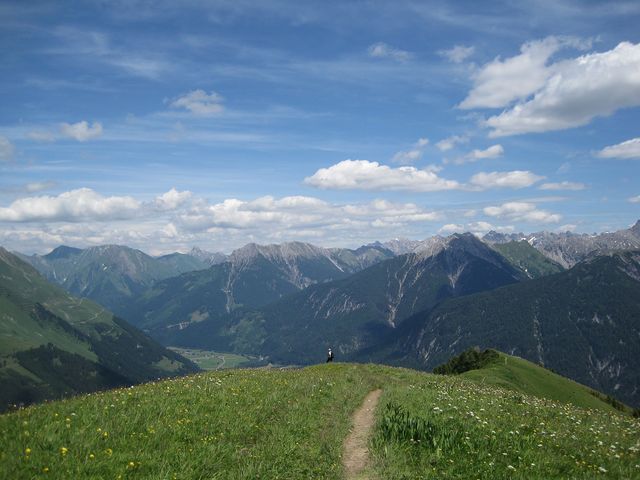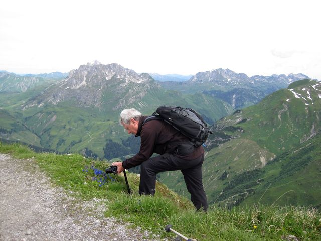 Cesta po hřebeni přes vrcholek Mutte (2 187 m) byla zážitková – užívali jsme si výhledů na vrcholky Lechtalských i Allgäuských Alp, i do údolí, jejichž dna jsme mnohdy nedohlédli a byli u vytržení z náprstníků, upolínů, vstavačů, kvetoucích azalek, hořců různých druhů a dalších, pro nás neznámých kytek…