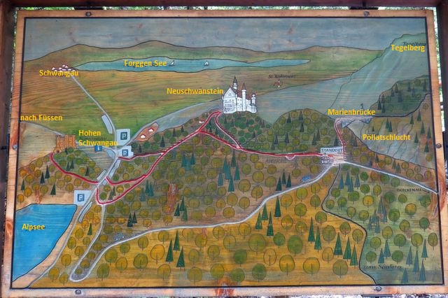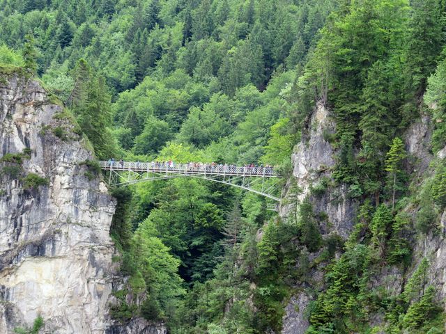 Je známo, že zvláště z dálky jsou oba zámky ve Schwangau krásné a do krajiny nejen dobře zapadají, ale zvyšují její kouzlo. Proto druhá část prohlídky patřila výšlapu na Mariin most (Marienbrücke), který se ve výšce 90 metrů klene nad propastí Pöllatschlucht, a z něhož je úchvatný výhled – ideální místo pro fotografy.
