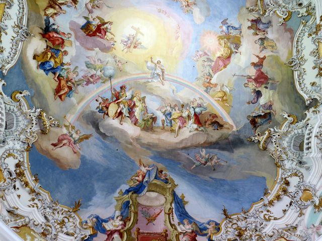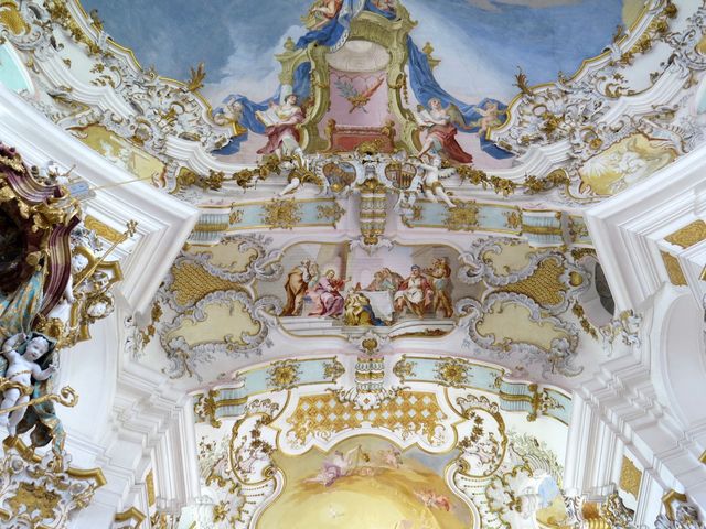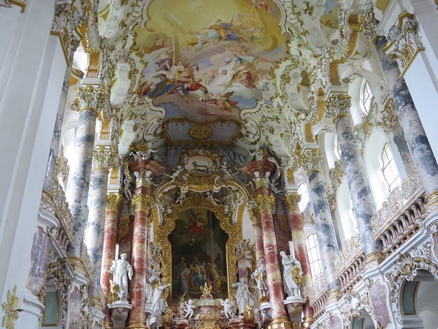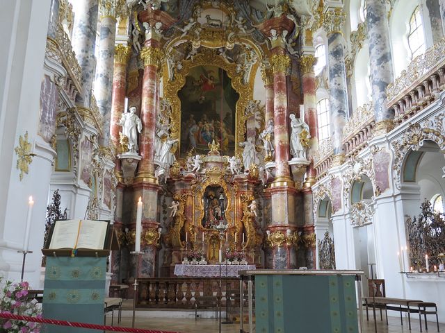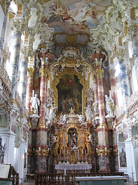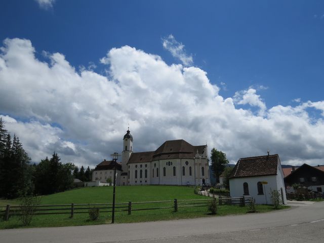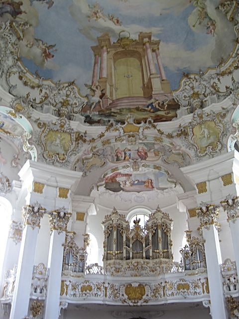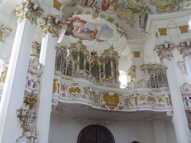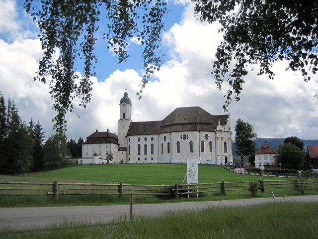 Ale ještě před tím, nežli jsme se ze Schwangau přesunuli do Linderhofu (což je necelých 60 km během nichž se vylepšilo počasí na stupeň „nádherné“), dostali jsme asi v půli cesty dárek – navštívili jsme nejdokonalejší rokokový kostel na světě, jak zní slogan, a věřte, že památka zapsaná od roku 1984 na Seznam kulturního dědictví UNESCO má na ten přídomek plné právo.