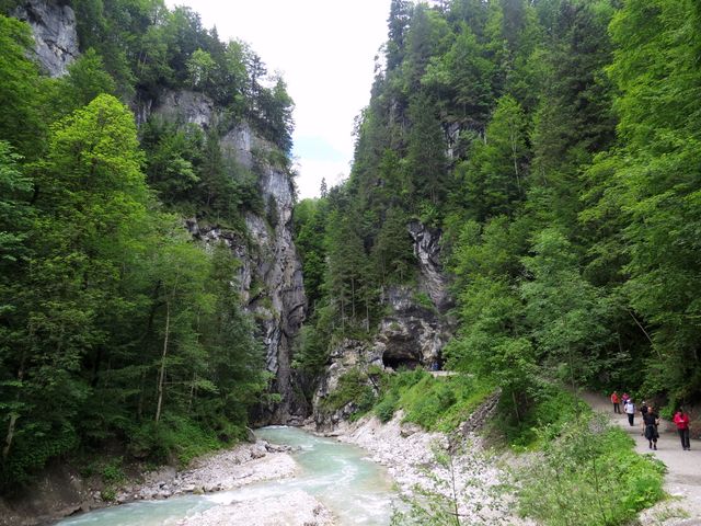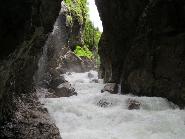 Když turista zmámený burácením vod a všudypřítomnými jemnými sprškami vystoupí na jižní stranu soutěsky, zjistí, že říčka Partnach je vlastně beránčí potůček.