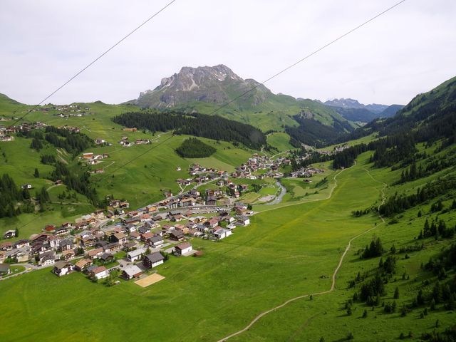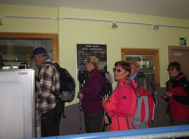 Zdejší lanovky jsme měli předplacené, proto jsme sjeli dolů do Lechu a vypravili se na protější svahy – na Oberlech (1 750 m) jsme vyjeli kabinovou lanovkou,