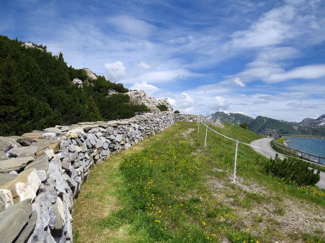 Vystoupili jsme na svah nad Kriegeralpe a objevili zvláštní kamennou zídku – na kamenech byla vytesána jména a letopočty – nerozuměli jsme tomu; doma jsem hledala na netu a zjistila, že autorem díla je tyrolský sochař Daniel Nikolaus Kocher (*1981), absolvent řezbářské školy v Elbigenalp, který na kamenné zdi zachytil v roce 2011 jména rodáků a současných obyvatel horských středisek Lech a Zürs, do budoucna se vždycky přidají novorozenci ze jmenovaných obcí.