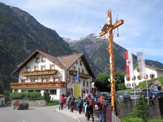 Symbolicky byl cíl dnešní trasy v Elbigenalp, kde jsme na konci prázdnin v roce 2005 bydleli spolu s táborskými turisty v Landhaus Huber a během týdne (ještě daleko křepčím krokem) prošli mnohé cesty, které nám i letos byly dopřány.