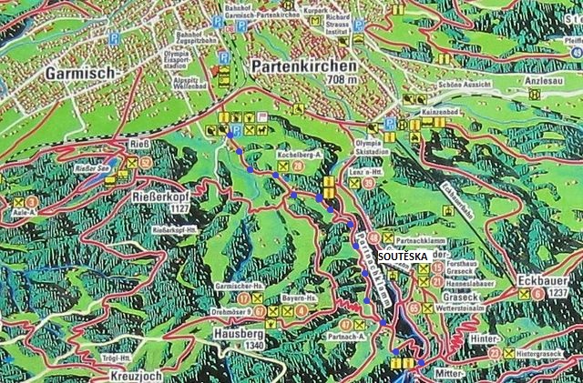 Protože byl program dobře dramaturgicky a s rozmyslem připraven, po první části pobytu v nejvyšší možné výšce dosažitelné v této oblasti patřila druhá polovina dne hlubočině – soutěska Partnachklamm u bavorského Garmisch-Partenkirchenu byla tou nejvhodnější příležitostí. Jen dvacet kilometrů přejezdu autobusem dělilo tato místa. Z parkoviště je vstup do soutěsky vzdálen necelé dva kilometry chůze nádherným údolím.