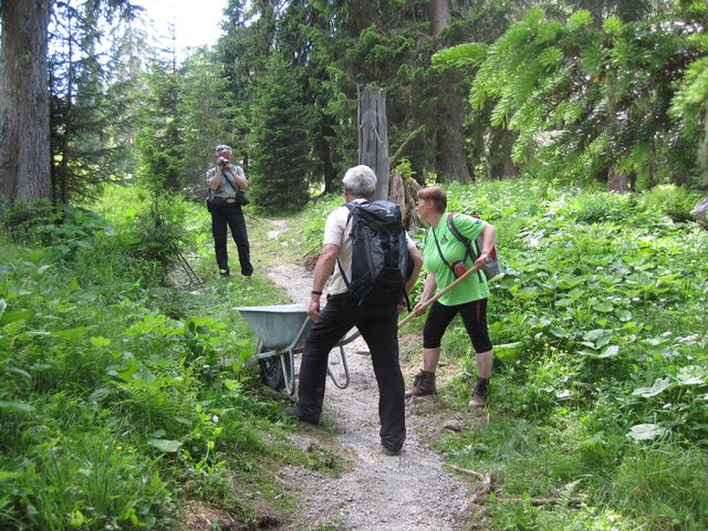 Na dvou místech jsme nalezli známky toho, že alpské stezky se průběžně opravují – nářadí zůstalo u cesty a Míla s Mirkem měli ještě dost energie, aby přiložili ruku k dílu: 🙂