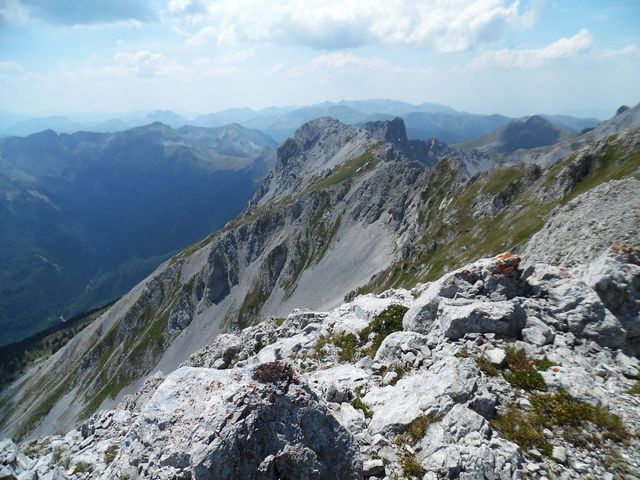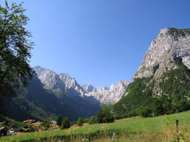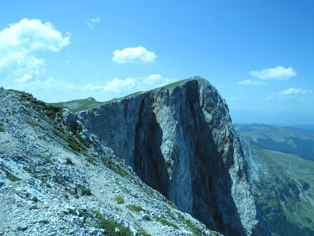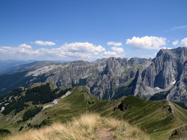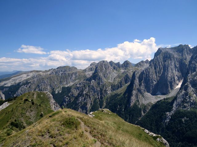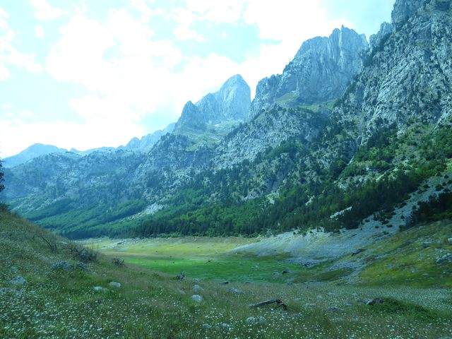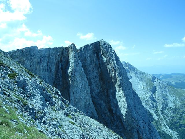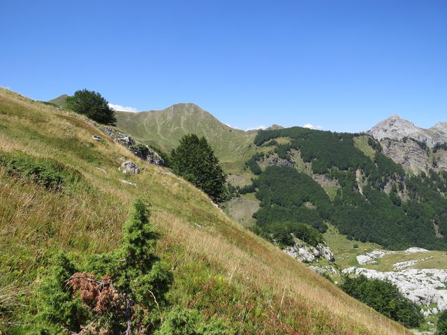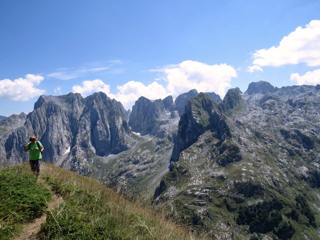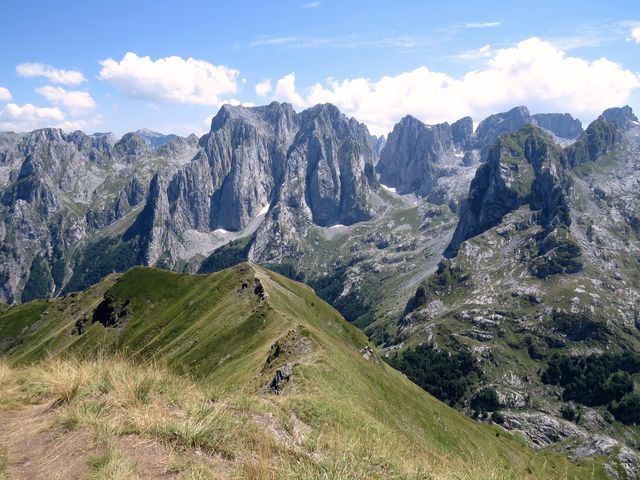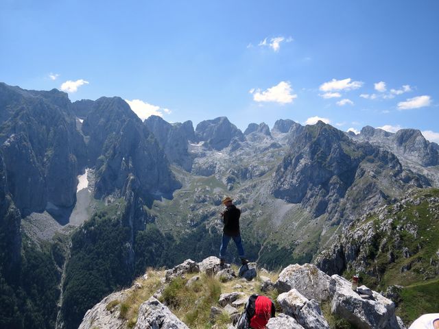Úchvatné, dva a půl tisícové štíty Karanfili jsme teď měli po pravé ruce – tento členitý hřeben se táhne z černohorského území na albánské a po stranách obou úpatí vytváří překrásná údolí Ropojana a Grbaje.