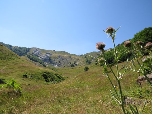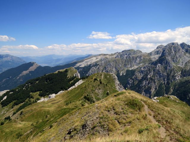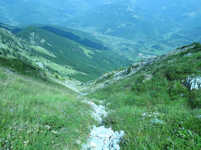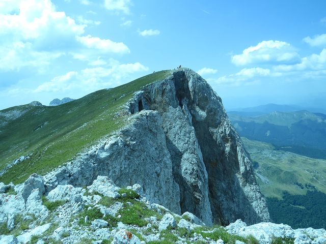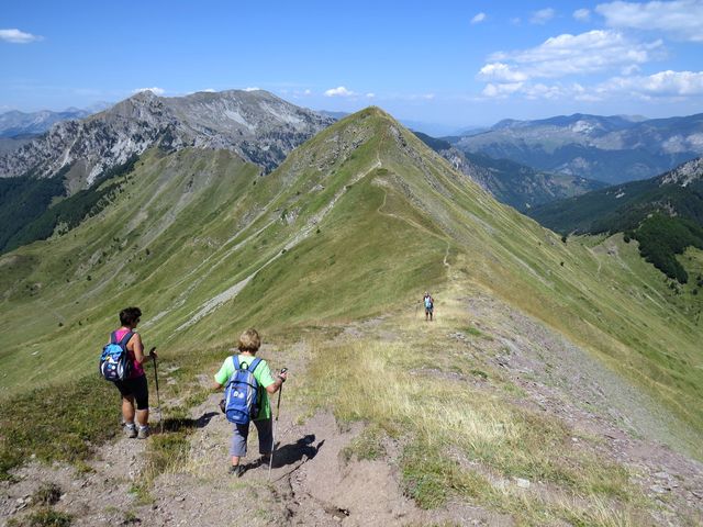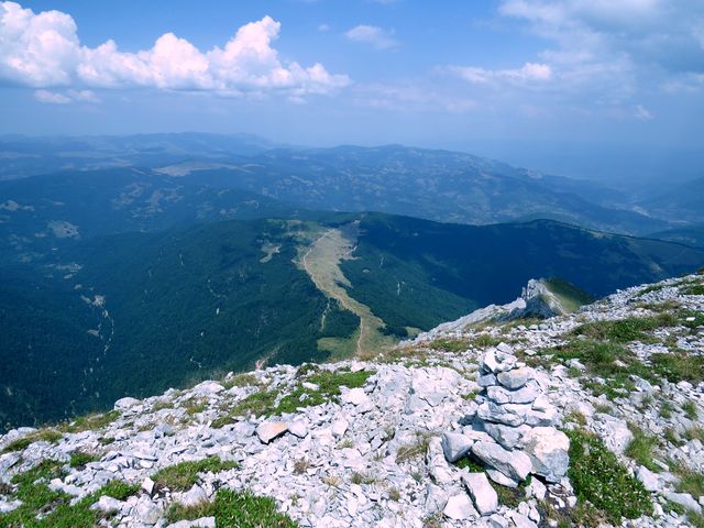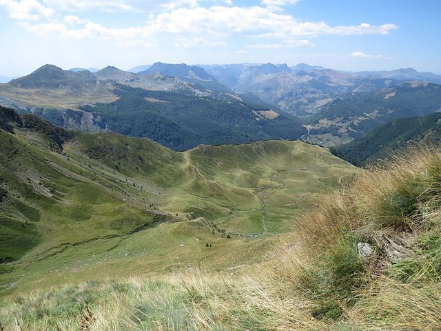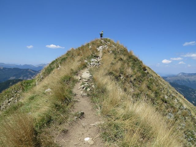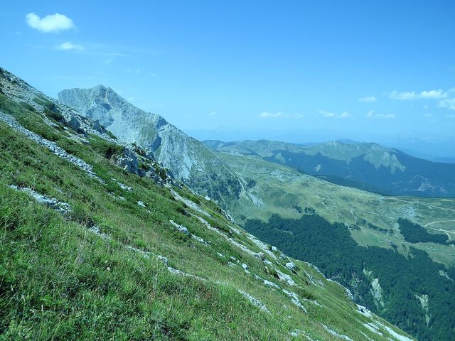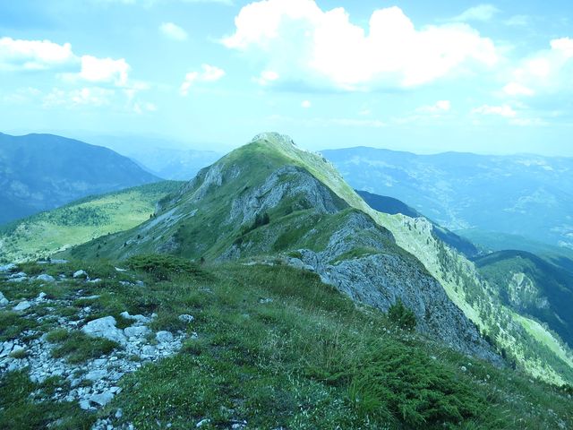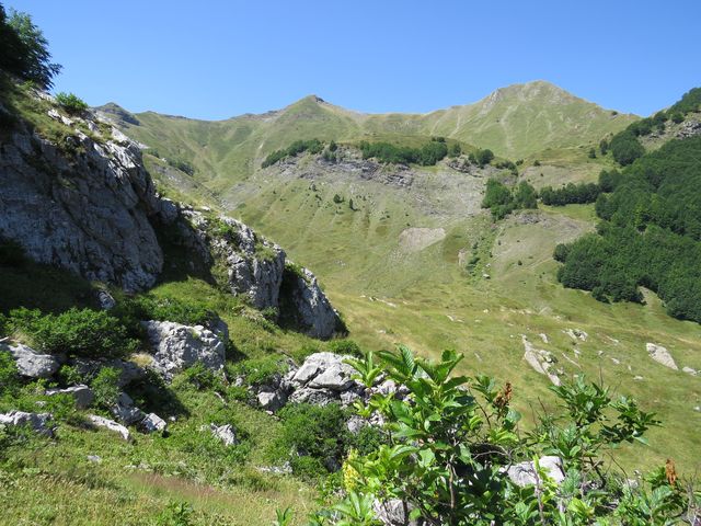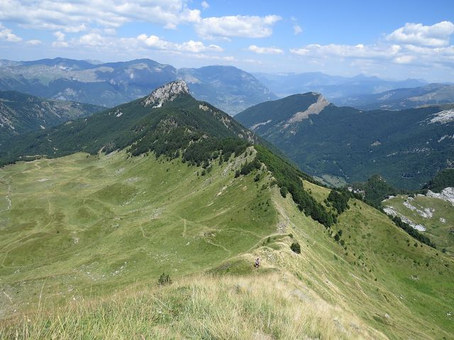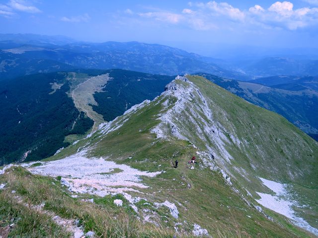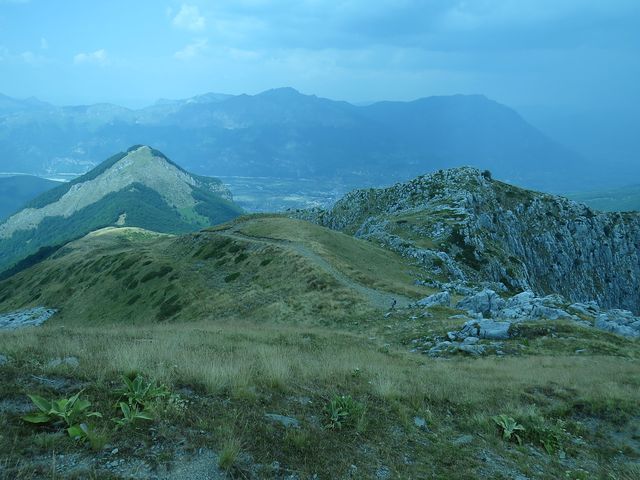 Ve známém údolí Grbaje jsme se vydali obslužnou cestou vzhůru do sedla Čafa Brada a pak po travnatém hřebenu s výhledy, o kterých se nám bude zdávat.
