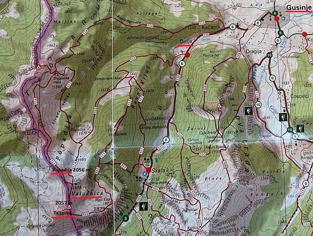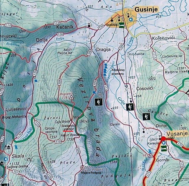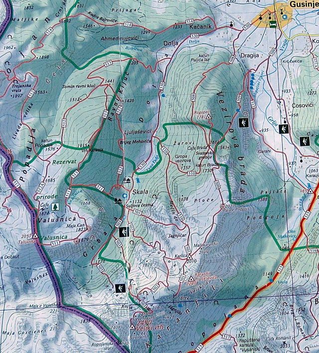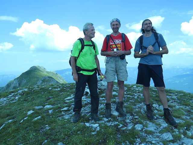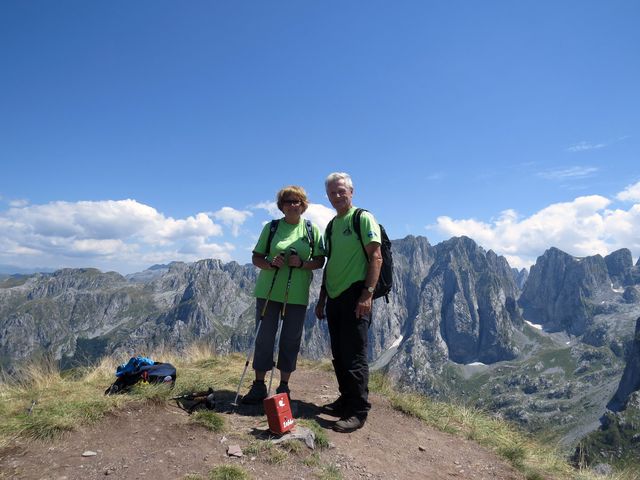 V pátek 14. srpna 2015 byla před námi poslední túra, při které jsme dostali příležitost obhlédnout pohoří Prokletije shůry a potěšit se s vrcholky, jejichž některé názvy už jsme dokázali určit. Zážitkový den proběhl na výrazném hřebenu Vezírova brada (1 781 m), tvořícím kulisu městečka Gusinje, pokračovali jsme výstupem na vrcholek Maja e Podgojs (2 021 m) a sestoupili pak k Alipašovým pramenům (923 m).