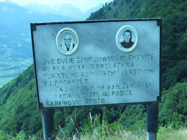 Zaujala nás zvláštní pamětní deska s fotografiemi dvou žen, pracujících celý život na zdejší salaši – pokud jsme správně rozuměli, chválí je za ochotu poskytovat v této odlehlé končině občerstvení pocestným – avšak teď se sem jejich následovnice už nehrnou…