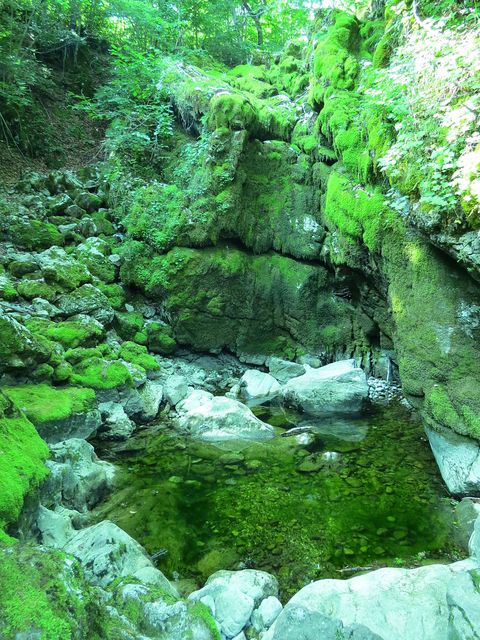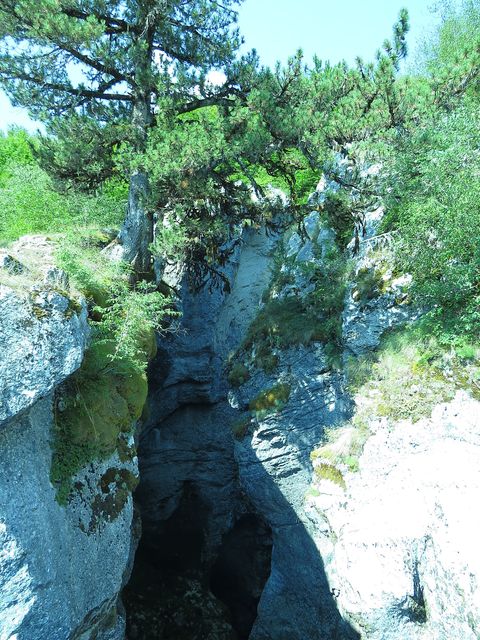 Říčka teče asi kilometr po povrchu, ale pak mizí v podzemí vápencového masivu, v Grle.