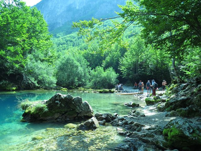 Jedna ze zvláštností, které sem přitahují turisty, je ponorná řeka Skakavica – sluneční světlo spatří v místě nazývaném Oko Skakavice – vývěr tvoří jezírko s velice, ale opravdu velice 🙂 studenou vodou – jen odvážlivci se v ní krátce smočili…