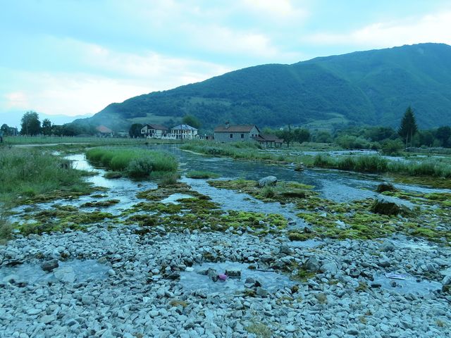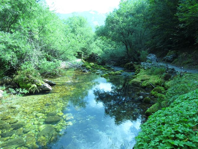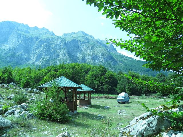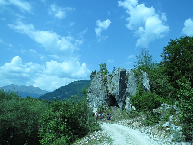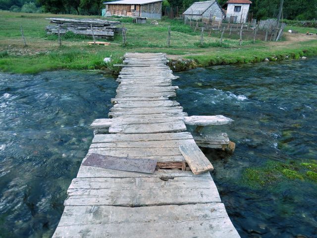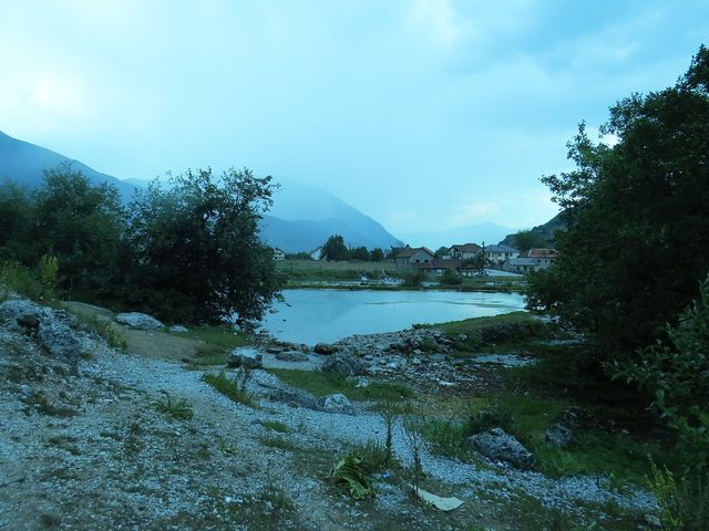 Přestože se chystalo na déšť, rozhodli jsme se přejít po mostě nad vyschlým řečištěm a vrátit se do Gusinje pěšky. Pod hřebenem Vezírova brada vede asi čtyřkilometrová stezka přímo k vyvěračce nazvané Alipašovy prameny (Alipašini izvori, 923 m n.m.).