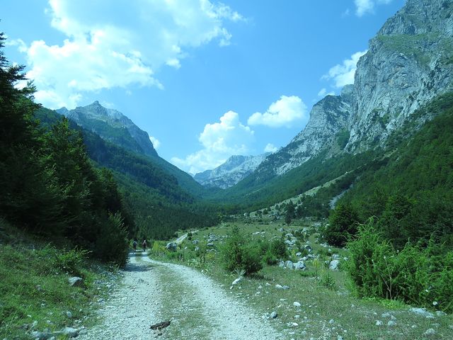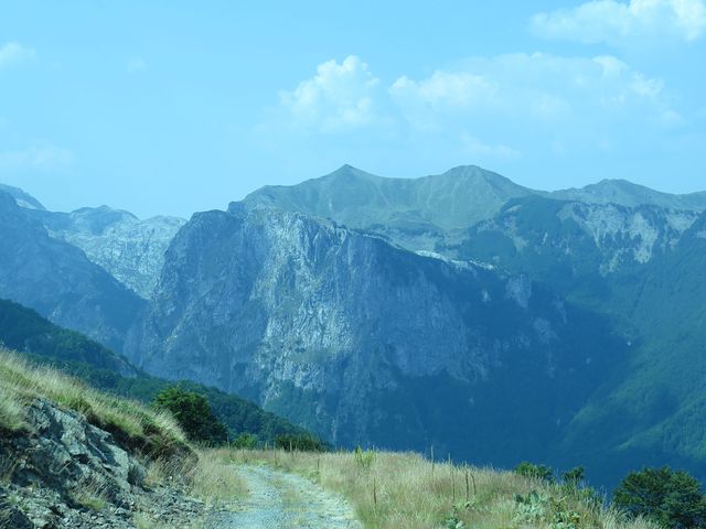 Stejnou šotolinovou cestou jsme se vraceli, teď stále mírně z kopce, do Vusanje a vychutnávali si hory z jiného úhlu, vedro bylo veliké, ne však úmorné v této výšce kolem tisíce metrů nad mořem. 🙂