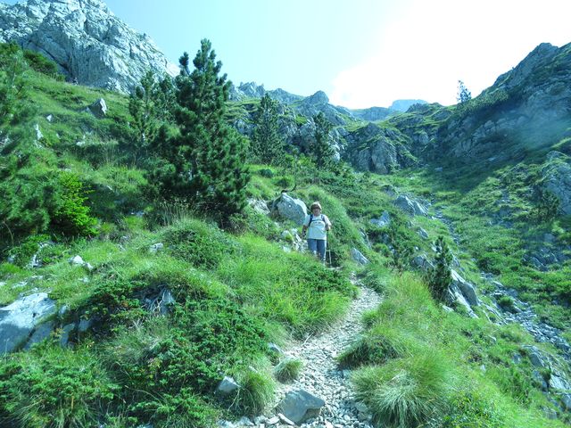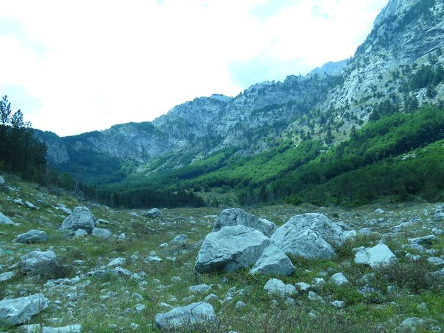 Když jsme natrefili vyschlé koryto potoka, bylo hej – asi po hodině jsme stanuli na římse nad Alipašovými prameny u Gusinje!