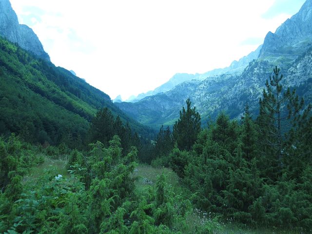 Od „planinarskeho domu“ jsme stoupali asi hodinu a čtvrt po prudkém zalesněném svahu do doliny, jejíž krásou jsme byli mile překvapeni.