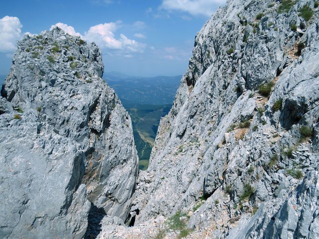 Když člověk stojí na vápencovém bradle Volušnice (1 876 m), na skále rozpraskané během tisíciletých nepohod, a se staženým hrdlem se dívá do téměř sedmisetmetrové hloubky pod sebou, zažívá pocit zcela mimořádný, s ničím nesouměřitelný. Po obou stranách údolí Grbaje se zvedají do výšky 2 500 metrů vrcholy hor – nalevo je masiv Karanfili (čili Karafiátových hor), vpravo Volušnica a Popadija.