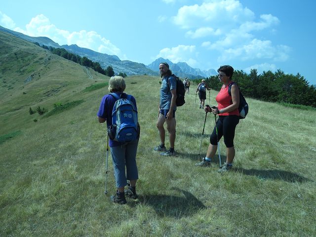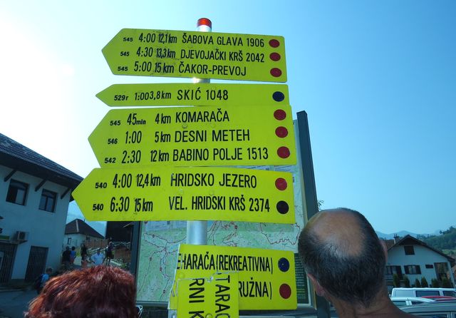 Ve středu 12. srpna 2015 nám Martin sdělil program dne, z něhož vyplývalo, že kromě radostí turistických se můžeme těšit i na poznávací část – čeká nás asi 40 kilometrů dlouhá cesta atraktivní krajinou, při níž budeme moci, nežli dojedeme do pohoří Komovi, spatřit vesničky obývané Černohorci a porovnávat s těmi, které jsme dosud poznali. Chvílemi dobrodružná jízda (když jsme potkali protijedoucí auto) velmi členitou krajinou vzhůru po úzké silničce do sedla Trešnjevik (1 573 m) trvala 90 minut, během nichž jsme nikde neviděli takový rozevlátý nepořádek jako v části obývané Albánci – ti asi kladou důraz na jiné věci… 🙂