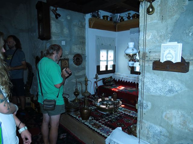 Objekt byl restaurován v 80. letech 20. století a ve skutečnosti teď slouží jako muzeum – byly sem soustředěny (myslím, že bez odborného výběru) všechny dostupné historické předměty a zařízení. Bylo zajímavé procházet různá zákoutí domu a místnosti umně oddělené schody a podestami, s obdivem jsme si prohlíželi prevét, nerušivě a elegantně zakomponovaný do stěny odpočívárny.