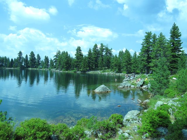 Asi po hodince „rozvýskané“ jízdy jsme dorazili ke katuním Bajroviča (1648 m) a odtud stoupali dobrou cestou k Hridskému jezeru ledovcového původu. Leží ve výšce téměř dva tisíce metrů, čemuž odpovídá charakter krajiny – panenská příroda, jaká zdaleka není k vidění ani v těch nejchráněnějších územích naší republiky. V lese se netěží, jen když spadne strom na pěšinu, odříznou ho tak, aby se dalo projít a další postup je v režii matky přírody – kůrovec sem cestu nenašel.