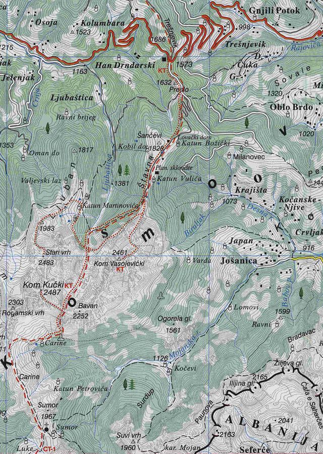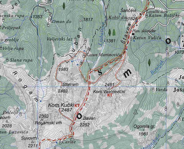 Cílem jízdy a startem denního pochodu byla katuň Štavna (1 700 m n.m.), která je východištěm do vápencového pohoří Komovi, konkrétně na vrcholy Kom Kučki (2 487 m) a Kom Vasojevički (2 461 m), které vyrůstají ze zelených luk planiny.