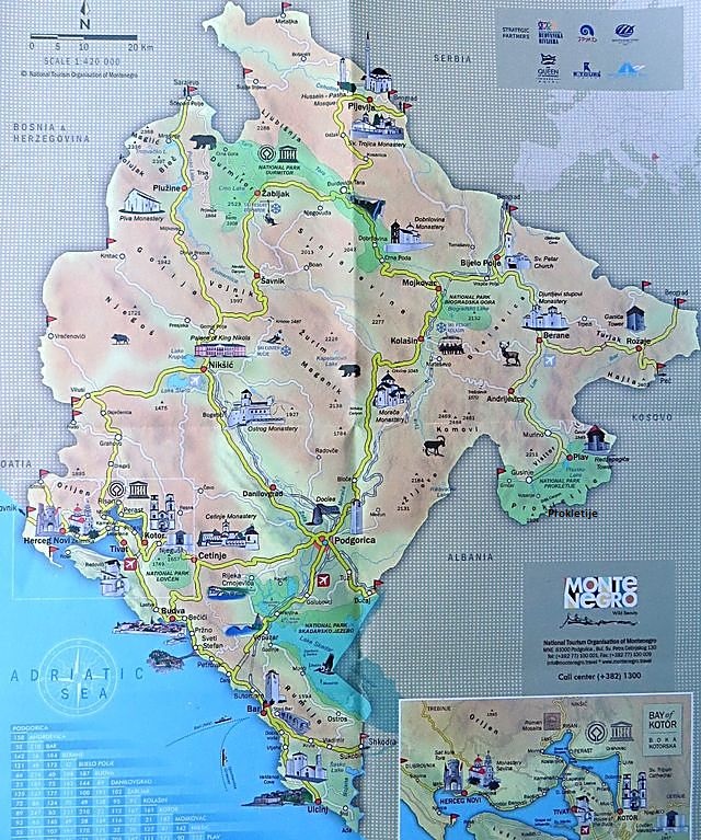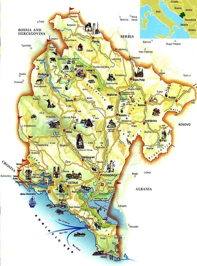 Ohlédneme-li se do historie země, zjistíme, že je značně nepřehledná, stručně se však dá říci, že asi od 6. století n.l. žili na území, kde se během staletí střídala různá zřízení a v roce 2006 vznikla samostatná republika Černá Hora, Slované. Úředním jazykem je srbština, píše se latinkou i cyrilicí, snahou je vytvořit černohorštinu, ale zatím prý je jazyk rozkolísaný a nejednotný – tahle informace je důležitá proto, že nejen v mapách, ale i v tiskovinách se setkáme s různou (pro cizince matoucí) podobou názvů – a v oblasti, kde jsme pobývali, se k tomu ještě přidává albánština. 🙂 Ale když lidé chtějí, vždycky se domluví… 🙂