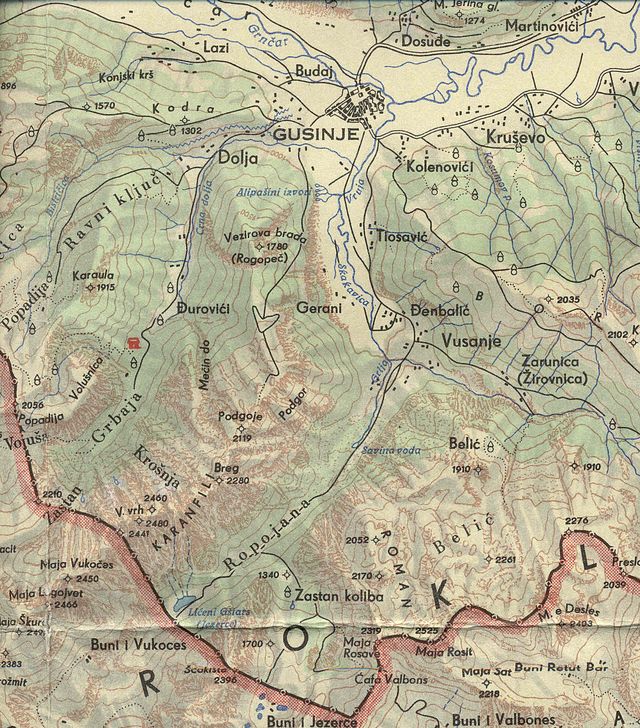 Když jsme dorazili do městečka Gusinje na východní hranici, bylo mi jasné, že nebudu mít příležitost potkávat typy z obrazů Čermákových – tato oblast je obydlena většinou Albánci, také hotel Rosi, kde jsme byli ubytovaní, patřil albánskému majiteli. Náš zájezd byl ale zaměřen na vysokohorskou turistiku, a tedy Gusinje bylo to pravé místo, neboť je považováno za východiště do pohoří Prokletije.