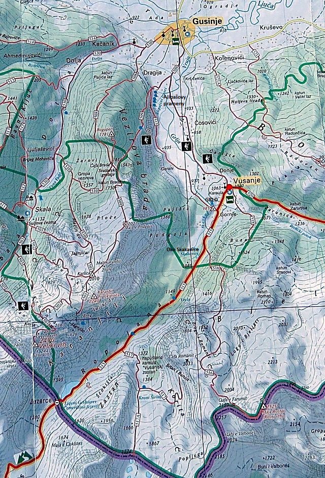 V úterý 11. srpna jsme před devátou hodinou odjeli do Vusanje, vesnice nejblíže albánským hranicím, obývané téměř výhradně Albánci. Autobus zastavil necelé dva kilometry před vesnicí rozloženou na svazích, po kterých jsme vystoupali k východišti do horského údolí Ropojana, známého několika přírodními zvláštnostmi.