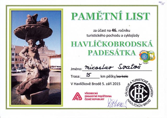 Letos jsme si nevybrali žádnou z pořadateli nabízených pěti pěších (15–50 km) ani tří cyklotras (30–70 km), ale z uváděného repertoáru si „naordinovali“ tzv. „dětskou trasu“, na které jsme ve známém prostředí očekávali setkání s pohádkovými postavami v podání havlíčkobrodských turistů. V předešlých ročnících měla tato speciální trasa velký úspěch, a tak jsme chtěli sebe i „herce“ potěšit – dobře si uvědomujeme, že zajistit vše potřebné pro zdárnou akci podobného typu, není vůbec maličkost!