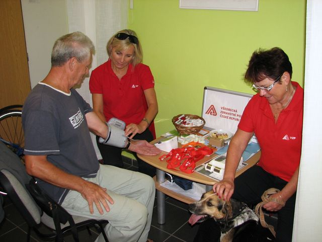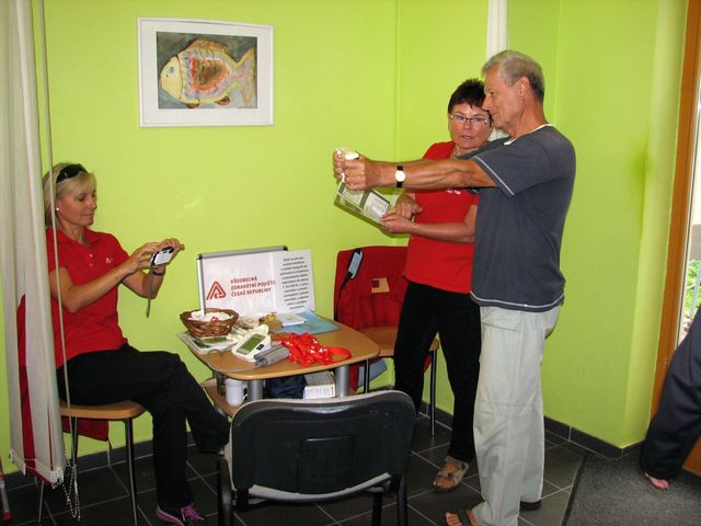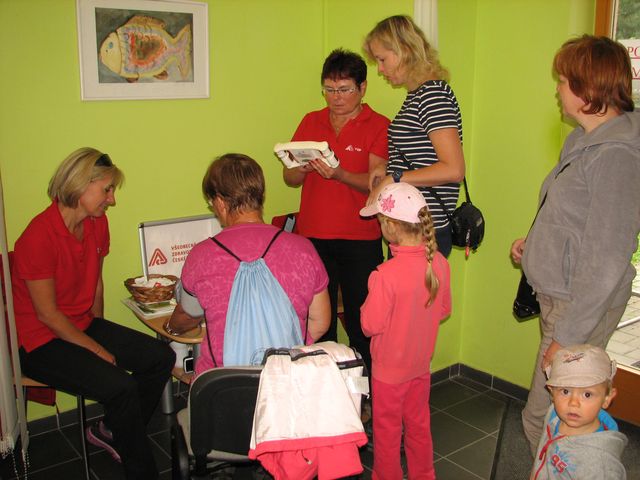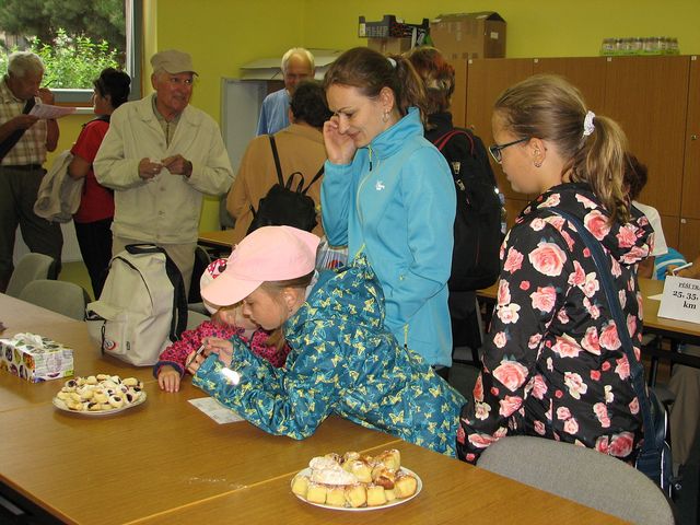 Poté, co jsme ochutnali výborné buchtičky a řezy, které pečou a tradičně na startu nabízejí turistky z místního odboru KČT, využili jsme i možnosti změření tlaku od přítomných pracovnic Všeobecné zdravotní pojišťovny – někteří z 247 účastníků srdnatě podstoupili i trochu rozčilující zjišťování procenta tělesného tuku – po sdělení výsledku mnozí z nich intenzivněji přidávali na trase do kroku… 🙂
