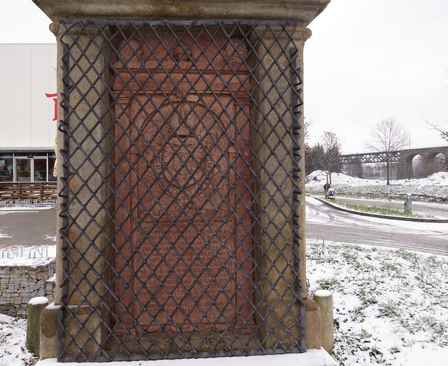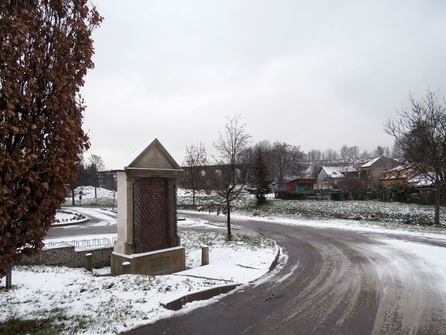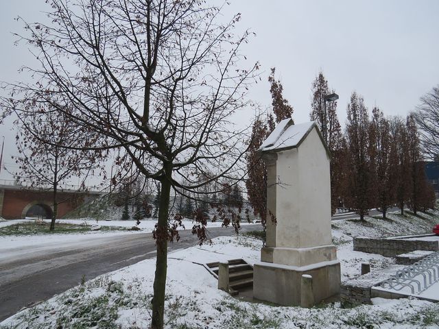V místech, kde město překročí řeku a vstupuje do Čech, stojí nenápadný, ale historicky velice ceněný objekt – Památník královské přísahy. (Fotky pořídil Mirek až v listopadu, v září na Vysočině nesněžilo. 🙂 )