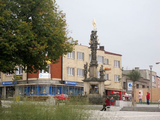 Chodník s daty těchto událostí, které měnily život zdejších lidí a určily výslednou podobu města, vede do středu náměstí k baroknímu morovému sloupu ze začátku 18. století, jehož autorem je Jakub Steinhübel.