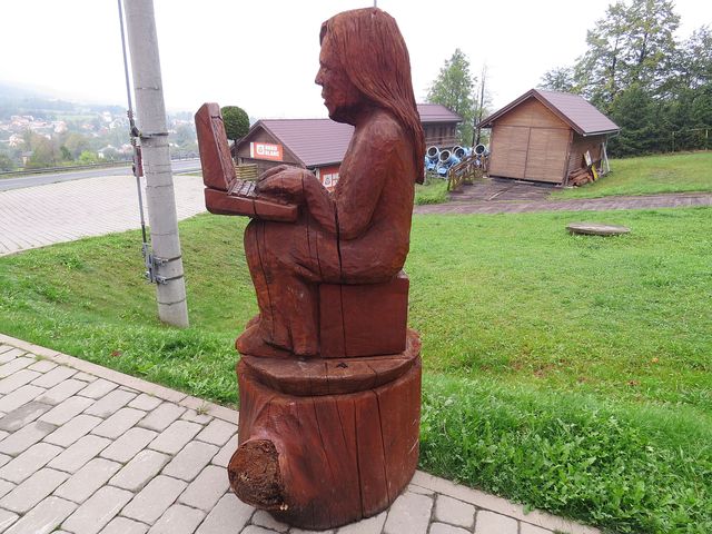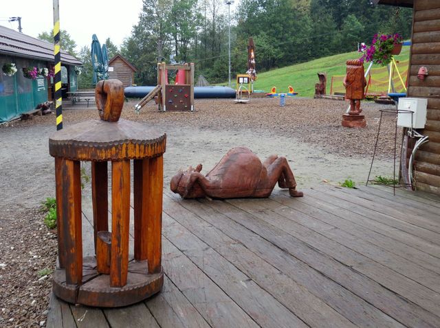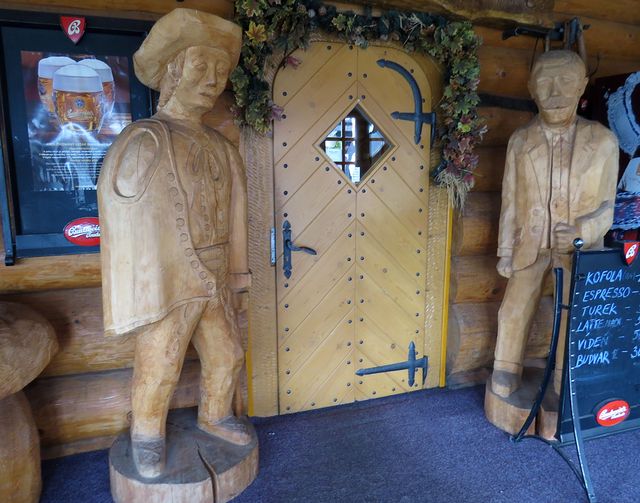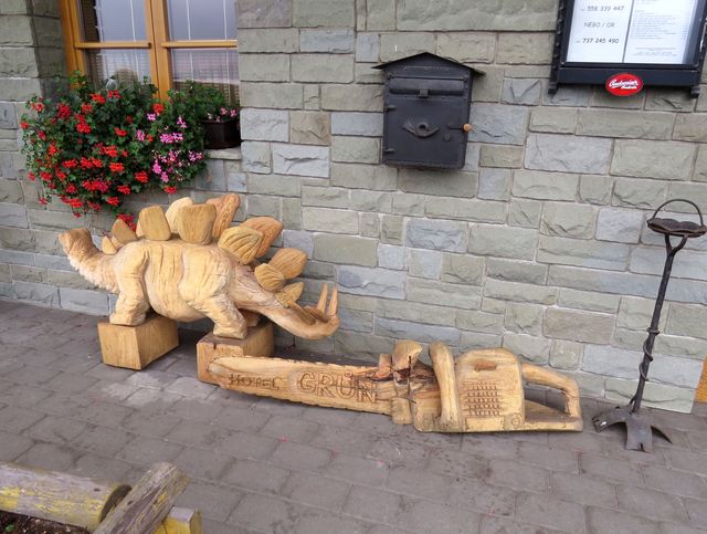 Jen pár kilometrů odtud, v Jablunkovském průsmyku, jsme si prohlédli okolí srubového hotelu Grůň – na svahu kopce Fojtský grúň (676 m n. m.), na jehož úpatí hotel stojí, je vybudovaná bobová dráha a rozsáhlý sjezdařský a běžecký areál. Co na konci září, mimo lyžařskou sezonu, poutalo pozornost návštěvníků, byla bohatá sochařská výzdoba okolí i interiéru hotelu – každoročně se tu koná řezbářská soutěž a některé artefakty zde zůstávají pro radost návštěvníkům.