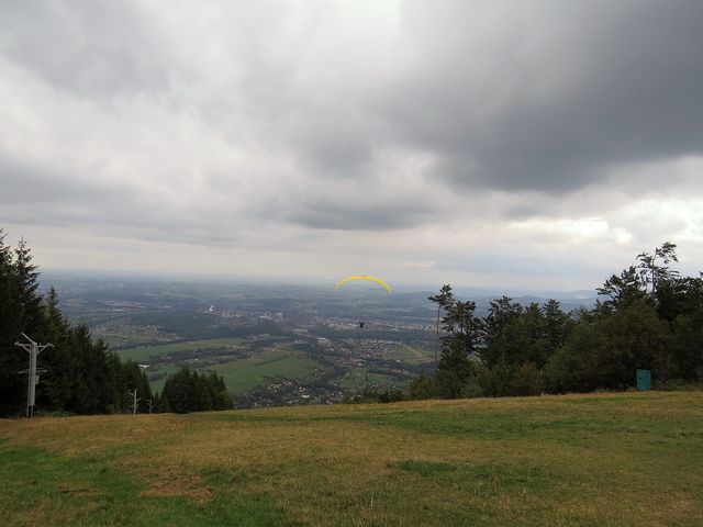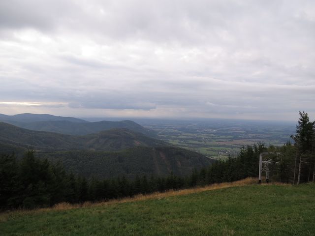 Dneska to byla jen průzkumná cesta, máme v plánu projít zdejší hřeben pěšky – už jsme však byli lačni výhledů do slezské nížiny pod hřebenem hor, kde se rozložila města Těšín a Třinec, včetně rozsáhlého areálu železáren – doufejme, že nám pak bude počasí příznivěji nakloněné.