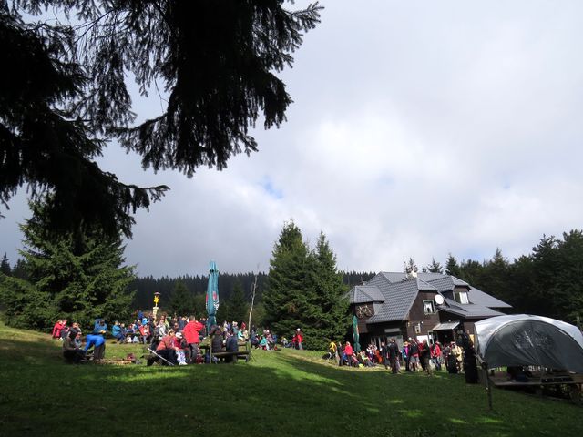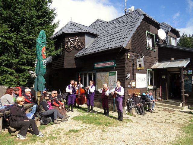 Bylo tu hodně živo, hrála hudba – střídal se folklorní soubor Jackové z obce Guty s dixilendovou kapelou, známí se vítali a povídali si. Očekávali jsme, že někdo z činovníků ústředí KČT, včera přítomných na zahájení Euroranda, přijde pozdravit návštěvníky a svou účastí podtrhne význam, který každé zařízení v majetku KČT má. Nikdo se neobjevil. Při slavnostním proslovu jsme cítili zklamání provozovatele chaty Zbyhněva Kantora nad vlažným zájmem o stav budovy a dění v této lokalitě.