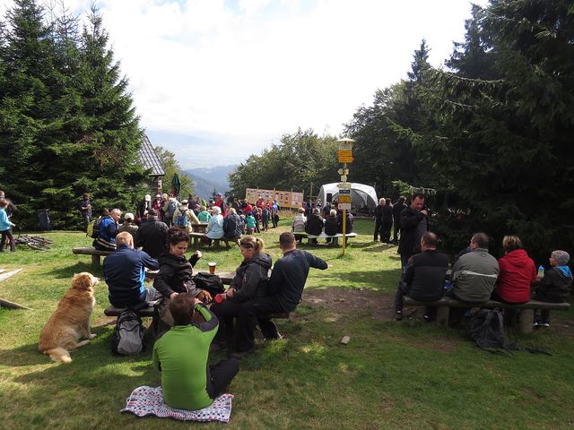 Cesta lesem, během níž jsme se potkávali se skupinkami turistů mířících na slavnost, ubíhala příjemně, horský pramen nabídl osvěžení,